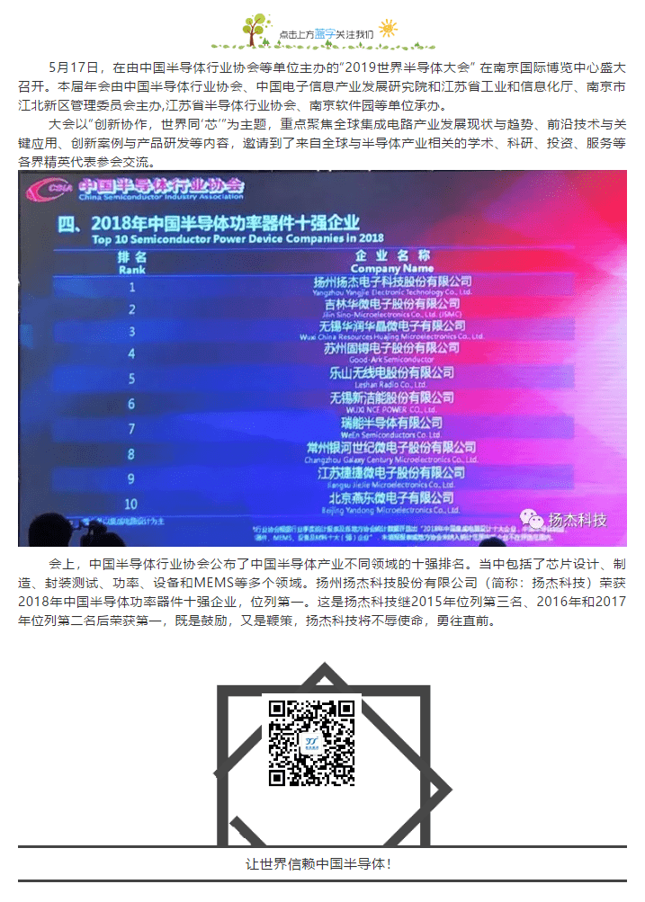 【喜訊】揚杰科技入選“2018江蘇百強創新型企業”榜單